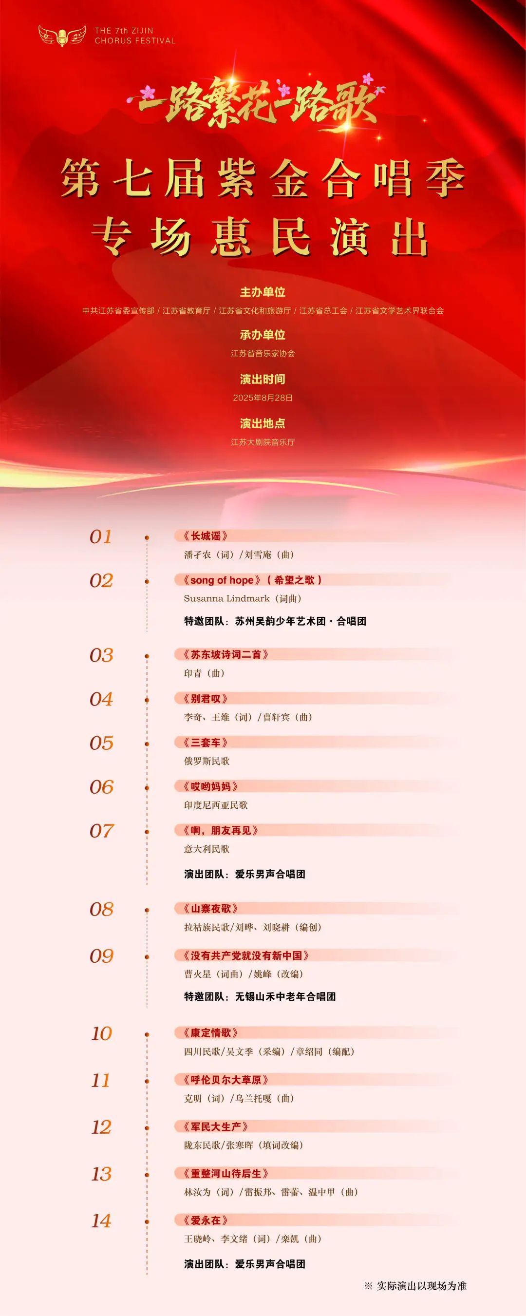 直播预告 | “一路繁花一路歌”第七届紫金合唱季专场惠民演出精彩来袭