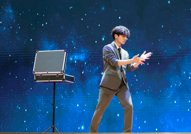 5月25日晚,“茉莉花开”文艺轻骑兵志愿行——2025江苏大学生魔术交流大会颁奖暨精品杂技魔术展演在南京警察学院举办。江苏省文联党组成员、副主席、书记处书记黄俊,南京警察学院党委委员、副院长骆家林,栖霞区人民政府副区长卢静,江苏省文联机关党委副书记朱正朋等出席并观看了演出。黄俊、骆家林、卢静为获奖代表颁奖。参加演出的不仅有2025江苏大学生魔术交流大会的优秀获奖作品,还有我省近年来在国内、国际杂技魔术赛场上屡创佳绩的精品力作。《纸飞机》《美式滑稽》《涟漪——蹬伞》《请随意打乱》《酷炫手彩》《虚实悖论》《化蝶》等精彩节目令人目不暇接。整场演出气氛热烈,高潮迭起。2025江苏大学生魔术交流大会由江苏省文联主办,江苏省杂协、南京市杂协、栖霞区文联承办,南京警察学院、江苏高校魔术社团联盟、奇幻森林(南京)公司等共同协办。活动共评出冠军1名、亚军2名、季军3名,优秀节目9个,充分展示了江苏高校魔术人才的发展成果。