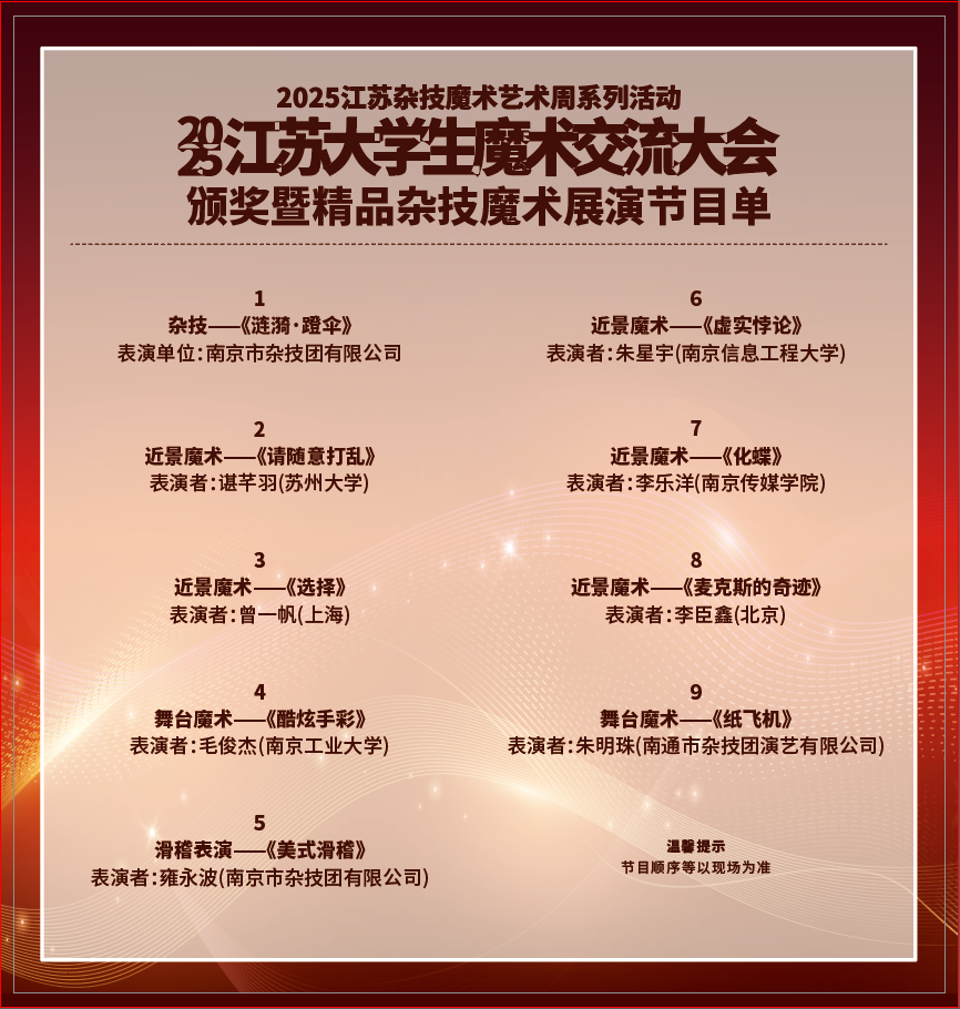 与人民同行 | “茉莉花开”文艺轻骑兵志愿行——2025江苏大学生魔术交流大会颁奖暨精品杂技魔术展演在宁举办