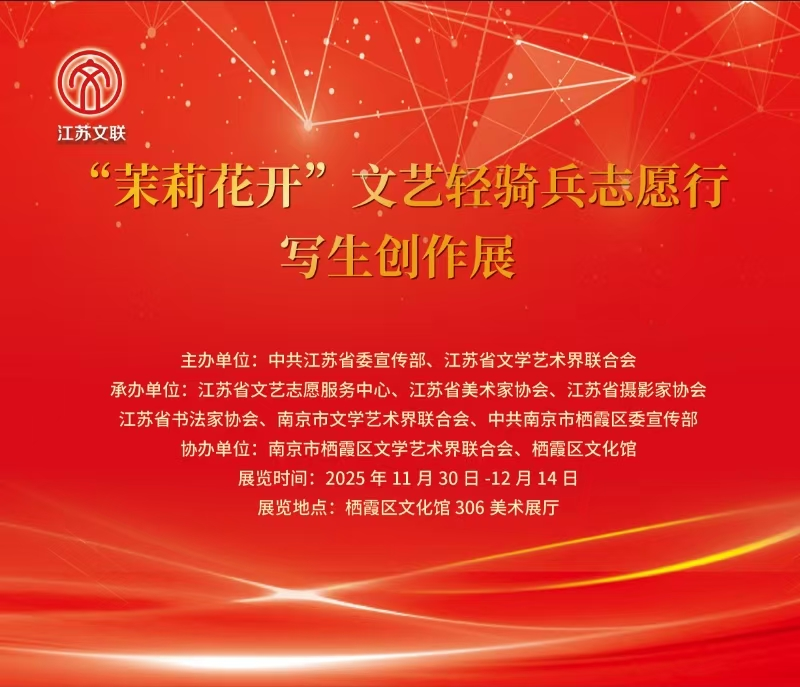 由中共江苏省委宣传部、江苏省文学艺术界联合会主办,江苏省文艺志愿服务中心、江苏省美术家协会、江苏省摄影家协会、江苏省书法家协会、南京市文学艺术界联合会和中共南京市栖霞区委宣传部共同承办的“茉莉花开”文艺轻骑兵志愿行写生创作展,正是“省级协同、市县联动、名作直达、群众参与、成果共享”思路的生动实践。