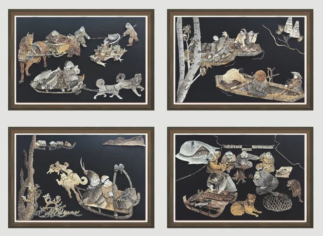 盛世新象赫哲族鱼皮镂刻组画(鱼皮剪贴工艺)