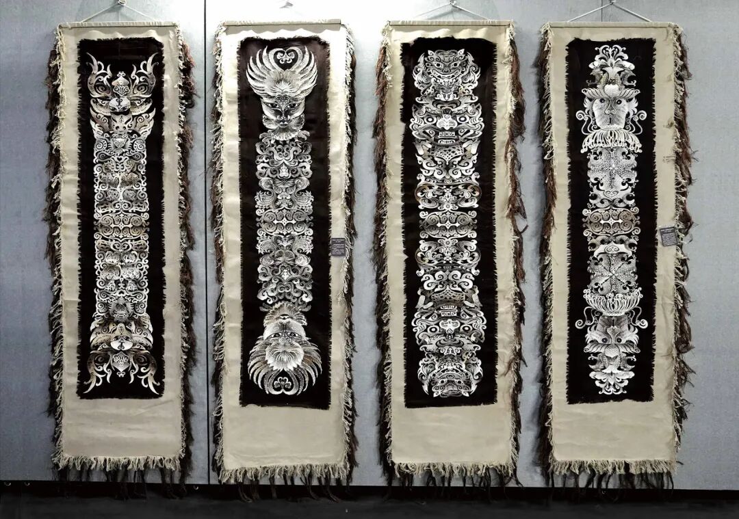 赫哲族伊玛堪民族史诗系列鱼皮组画(鱼皮剪贴工艺)