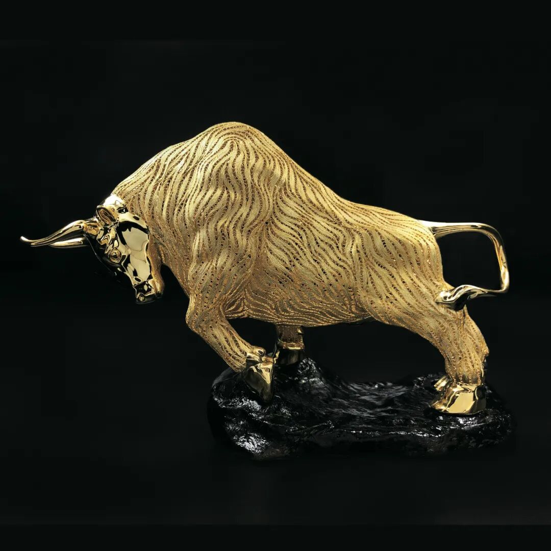 “气势如虹”生肖牛摆件(花丝镶嵌与錾刻技艺)
