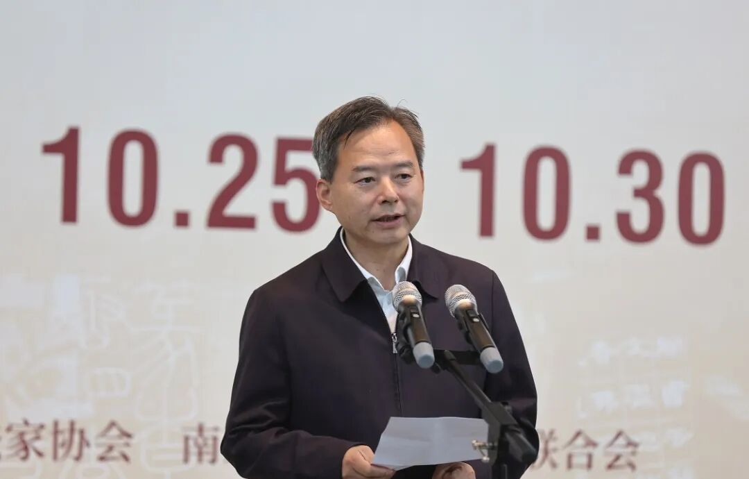 陈政讲话指出传统刻字艺术作为中华民族独特的文化符号源远流长,而现代刻字艺术则在传承基础上融入创新。南京作为全国刻字重镇融合南北风格,近年来通过系列展览如“胜景新韵”等取得显著成就,包括在全国第十二届刻字艺术展中8人入展位列省会第一。本次展览的33件南京作品中,木质与综合材料作品并重,既展现传统技艺又探索多元表达,体现了艺术家们的精湛水平和创新精神,期望以此推动江苏文艺事业迈向新辉煌。
