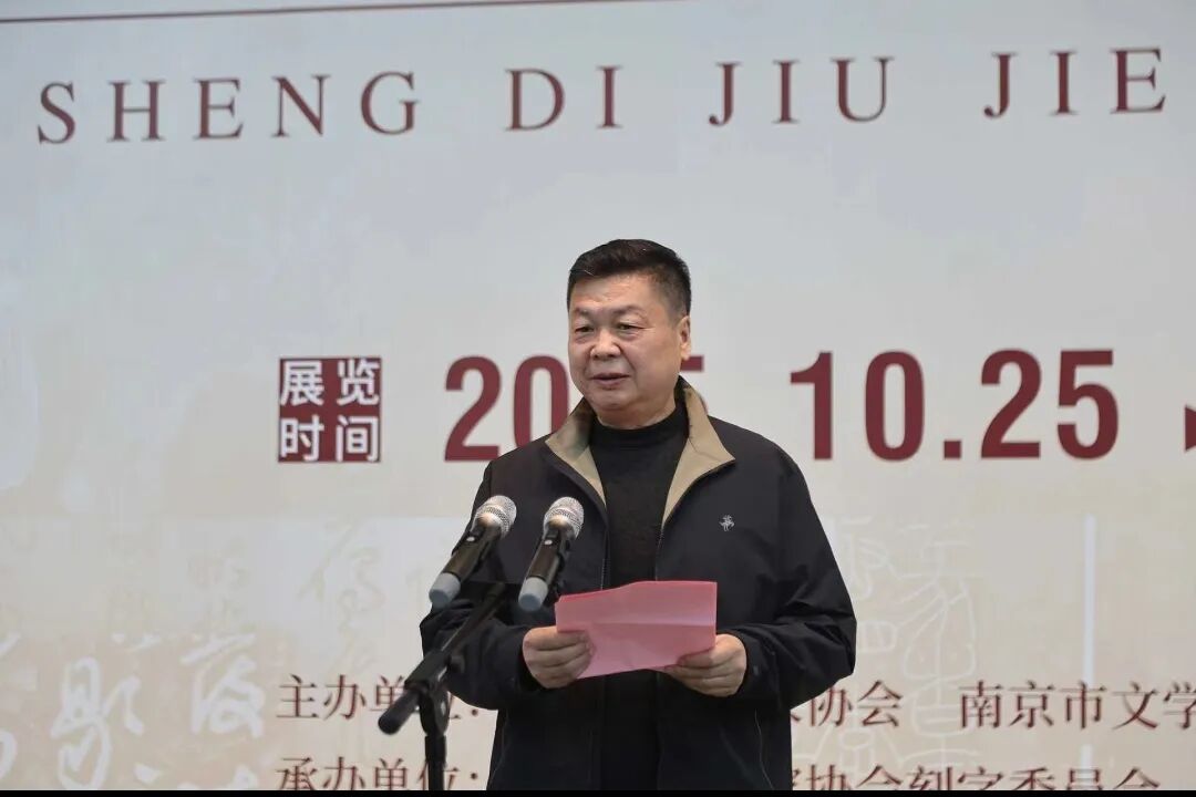 江苏省文联党组成员、副主席,书记处书记刘轩明,南京市文联党组书记、常务副主席陈政,省书协副主席刘灿铭、黄正明、谢少承、常汉平,省现代美术馆馆长赵震,省书协副秘书长纪松,省书协刻字委员会主任、无锡市书协主席孙璘,南京市书协、省书协刻字委员会相关领导嘉宾以及各界朋友近百人参加开幕式。刘轩明、陈政分别致辞。刘灿铭介绍展览相关情况并宣读获奖作者名单。展览由南京市文联党组成员、副主席李志平主持。