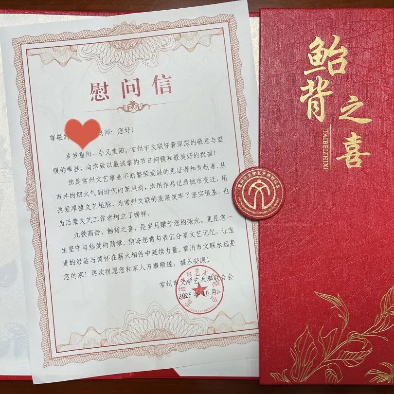 ▲在重阳节这个浸润着尊老、敬老、爱老传统的节日里,常州市文联以“心”为笔,精心策划90岁以上老艺术家专属慰问活动。一通通带着温度的电话、一封封满含敬意的书信,将“娘家人”的关怀精准送达,用实际行动践行“服务文艺家、温暖文艺家”的初心,让“文艺家之家”的温情底色愈发鲜活。