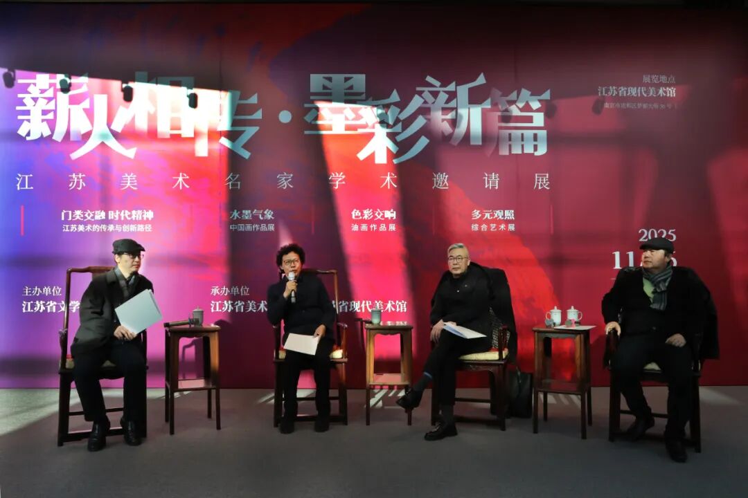 11月20日,“薪火相传 墨彩新篇”主题座谈会在省现代美术馆举行。中国美协副主席、省美协主席陆庆龙,省美协副主席、省美术馆馆长王法,省美协副主席、省现代美术馆馆长赵震,省美协副主席、南师大美术学院院长刘玉龙,省国画院副院长栾剑,江苏第二师范学院美术学院院长路明,省现代美术馆副馆长浦均,江苏第二师范学院美术学院副书记孙仕荣,江苏第二师范学院传媒学院副院长刘方,南京书画院(金陵美术馆)副院长(副馆长)赵怡文,南师大美术学院国画系主任谭雷鸣,南艺美术与书法学院油画系主任蓝剑,省水彩画研究会副会长徐东生以及南师大美术学院、南艺美术与书法学院、南京大学艺术学院、江苏第二师范学院美术学院的师生近百人参加座谈会。活动由省美协副主席、南京艺术学院副校长吕少卿主持。