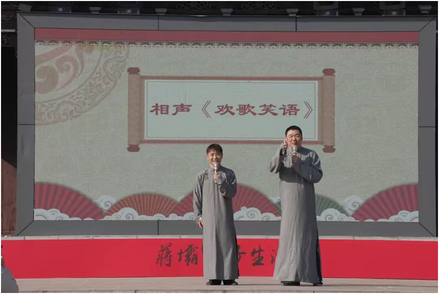 当日上午10时,专场文艺演出在洪泽湖产业学院藏族学生热情洋溢的开场歌舞中拉开序幕,顿时将现场气氛点燃。随后,一曲《一杯美酒》,以悠扬的歌声让人沉醉;相声《笑语欢歌》妙语连珠,引得观众笑声不断;古筝重奏《西凉沙影》如清泉流淌,令人心旷神怡。歌曲《我的未来式》活力登场,青年歌手通过动感旋律瞬间点燃全场热情;男声独唱《英雄赞歌》倾情演绎,在场观众动容不已;杂技•肩上芭蕾《月》,将力与美完美结合,赢得阵阵喝彩;唢呐独奏《百鸟朝凤》模仿百鸟争鸣,展现了中国传统乐器的独特魅力;京剧《梨花颂》字正腔圆,让观众领略到国粹艺术的博大精深。最后,男女合唱《向往》为演出画上圆满句号,歌声中饱含着对乡村振兴的美好祝愿。
