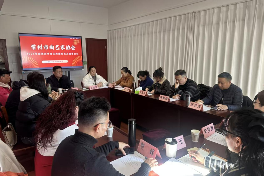 ▲2025年12月26日,常州市曲艺家协会主席团、理事第四次会议召开,协会主席团成员及理事出席。会议强调,文艺工作者要始终为人民抒怀,树牢以人民为中心的创作导向,坚持扎根人民,繁荣互联网条件下新大众文艺,把最好的精神食粮奉献给人民。