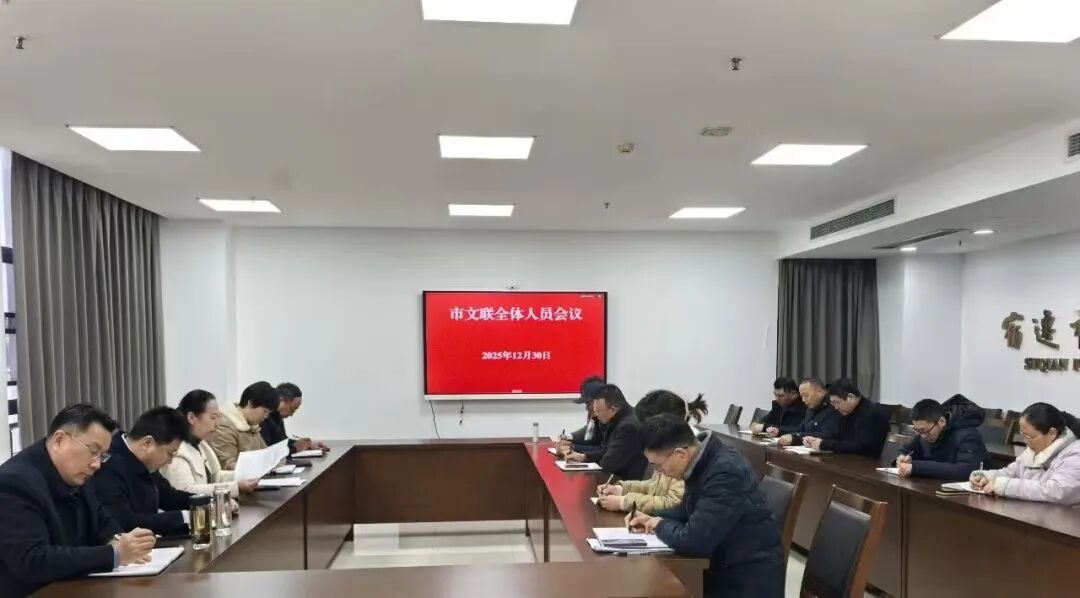 ▲2025年12月30日,宿迁市文联召开全体人员会议,集中传达学习宿迁市委六届十二次全会暨市委经济工作会议精神,研究部署贯彻落实举措。会议强调,要强化思想认识,学深悟透,融会贯通;要聚焦中心大局,紧扣重大主题,推出一批反映宿迁发展、彰显时代精神的精品力作;要强化队伍建设,推动宿迁文艺事业高质量发展。