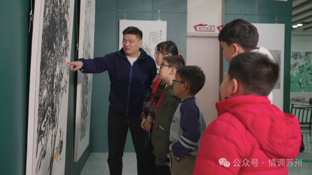 在东欣村新时代文明实践站一楼,翁建红美术馆静静伫立。这座脱胎于乡土的艺术空间,不仅是本土艺术家作品的展示窗口、村民触手可及的 “家门口的艺术客厅”,更是胥口 “书画之乡” 推进乡村文化振兴的具体实践,是苏州市文联贯彻落实“文艺赋美乡村振兴” 在基层落地生根、开花结果的生动注脚。苏州市文联以自身为桥梁,上承省级文艺资源的引领优势,下接县级文联、乡镇文化阵地的实践需求,通过整合资源、精准对接,将顶层文艺赋能规划转化为基层可落地的具体举措,为当地居民尤其是孩子们,悄然种下了一颗颗传统文化的种子。