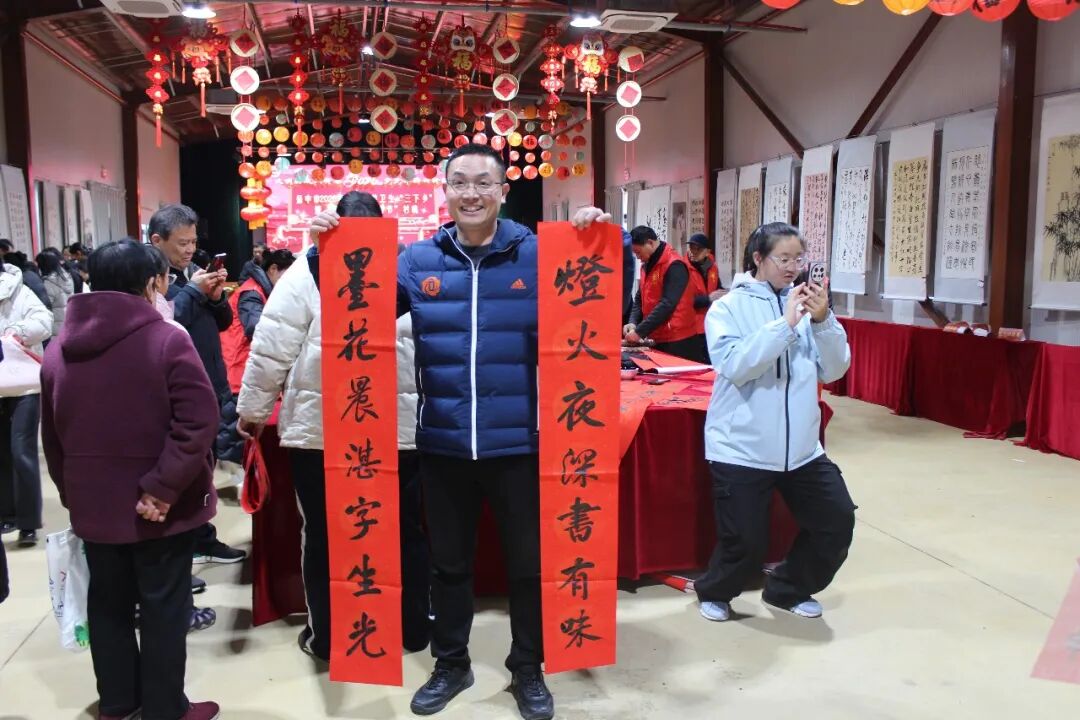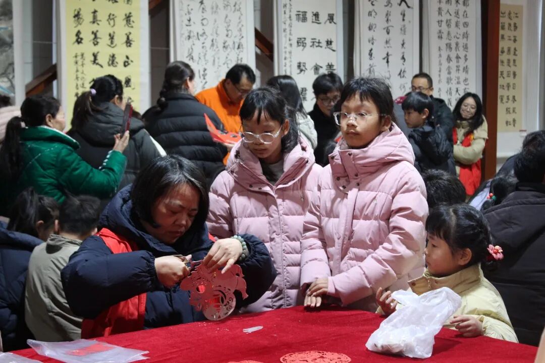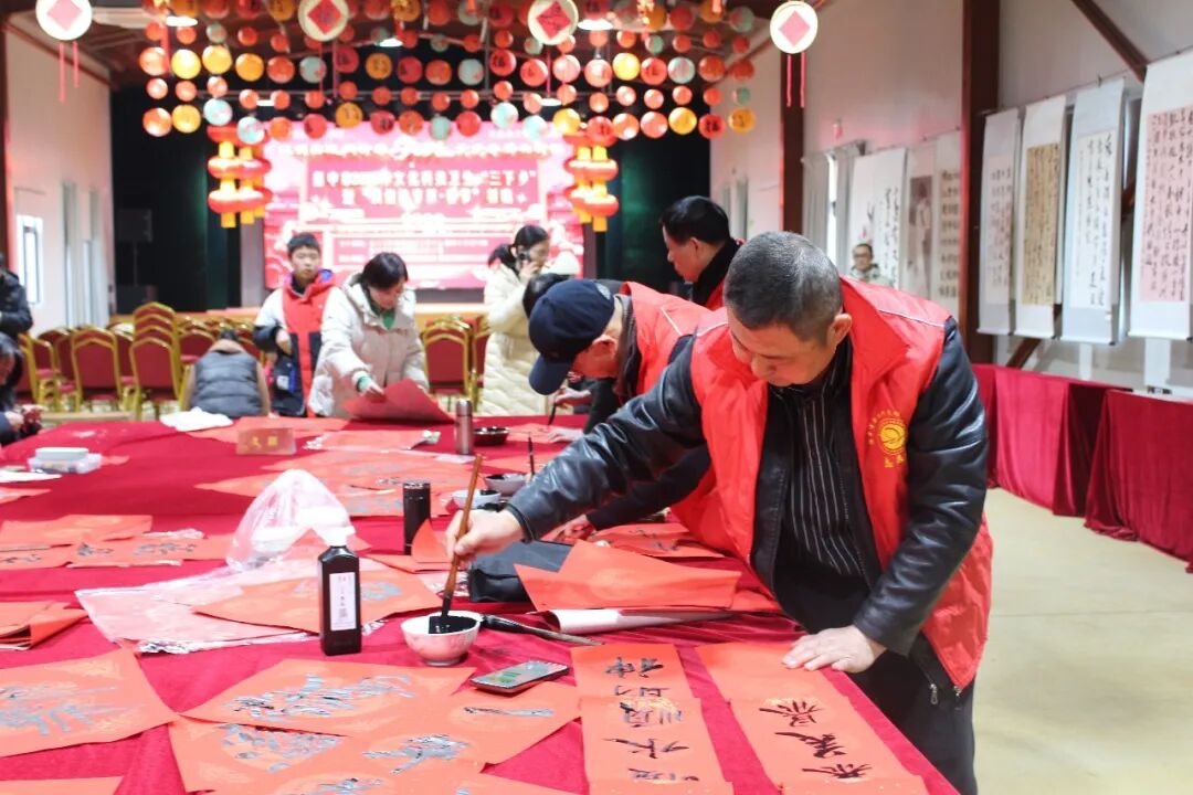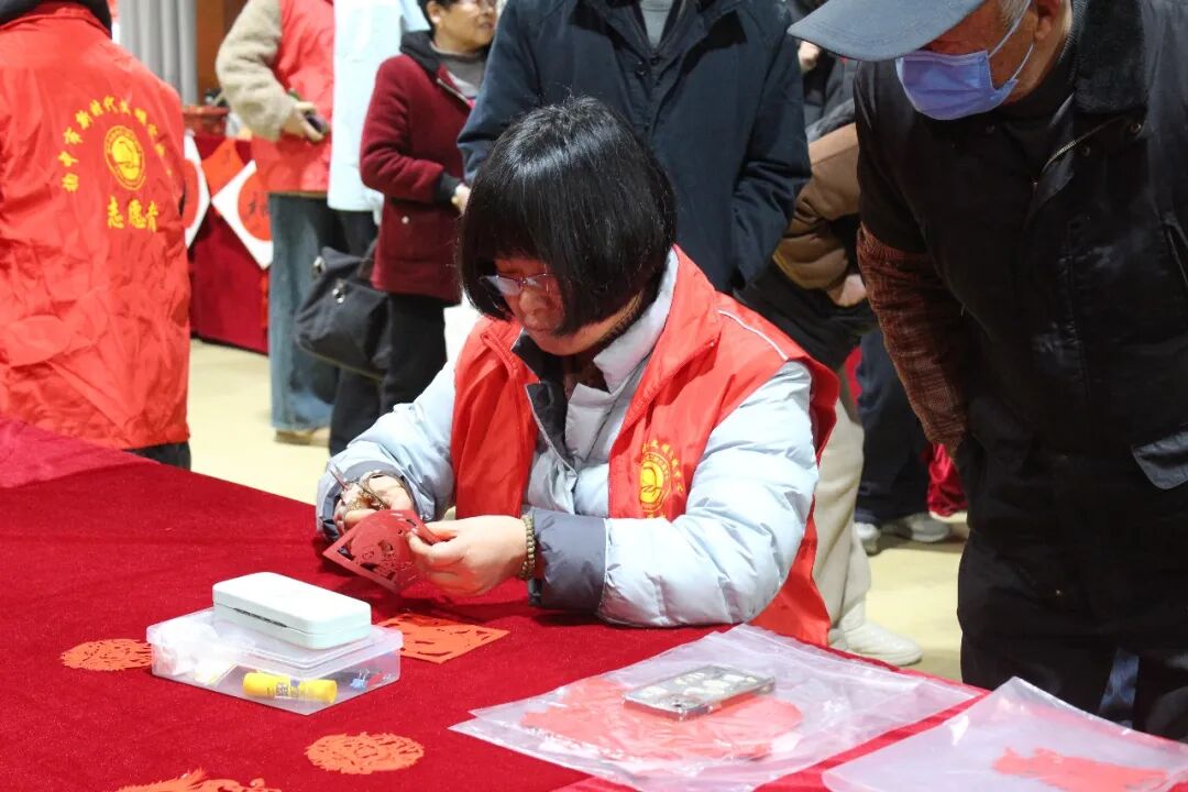 扬中市文联组织文艺志愿者在现场义务写春联、送福字、剪彩纸、演节目,将书法、剪纸、戏曲等传统文化送到基层,让村民在家门口尽享新春文化盛宴。