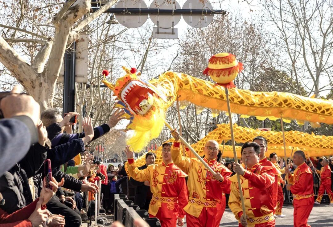 2026年2月7日,南京高淳民间舞龙队把108节的板凳龙舞进了城市,为广大市民表演了一场富有感染力的精彩演出。李京培 摄