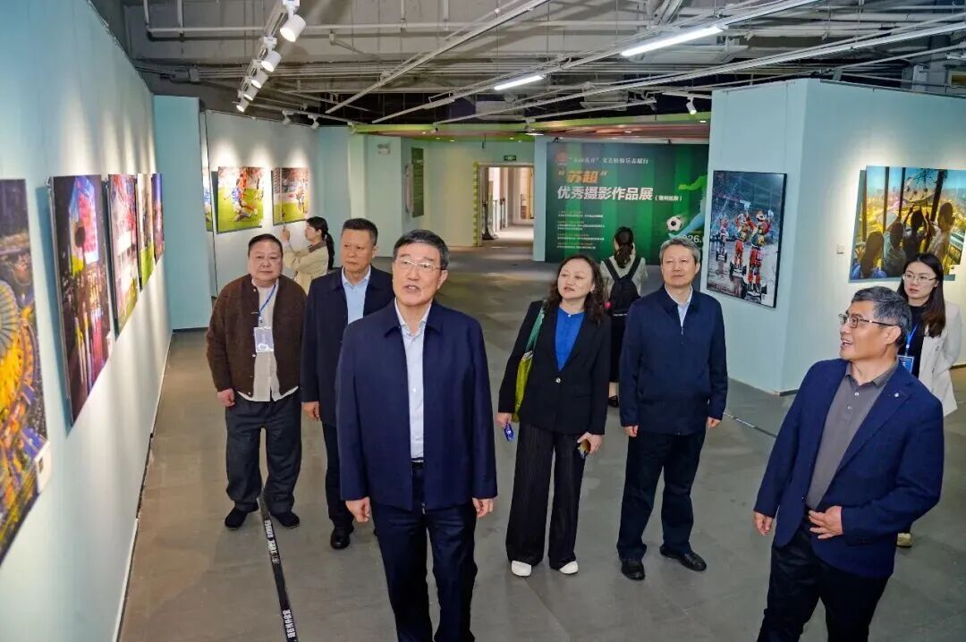 省文联主席姚晓东,省文联副主席、党组成员黄俊,省摄协主席肖勇,常州市文联党组书记、主席沈玉俊观看“苏超”影展