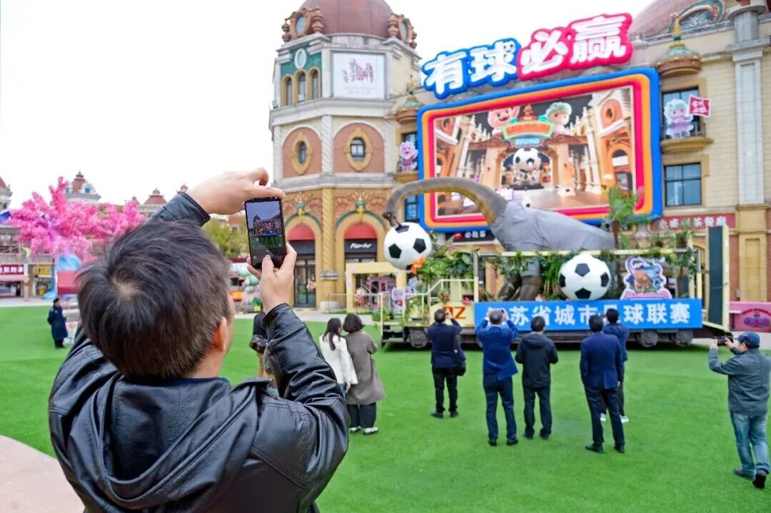 据悉,省摄协主办的“苏超”优秀摄影作品展巡展于4月4日至5月5日来到常州。2026“苏超”开赛前夕,迪诺水镇打造“苏超”足球主题街区,设置江苏十三城巨型球衣视觉装置,面向市民与游客开放共创涂绘,赛事期间,现场高清巨幕将实时转播赛事,带来震撼沉浸式观赛体验。