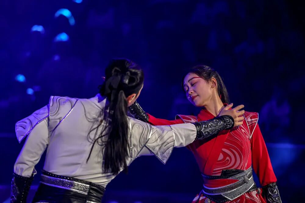 该节目突破传统杂技表演侧重技巧展示的模式,将中国古典武侠文化的精神内核与美学风格深度融入“跳板”与“蹦床”两项极具动感和视觉冲击力的杂技形式中,赢得现场观众的热烈掌声。