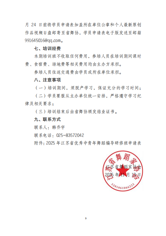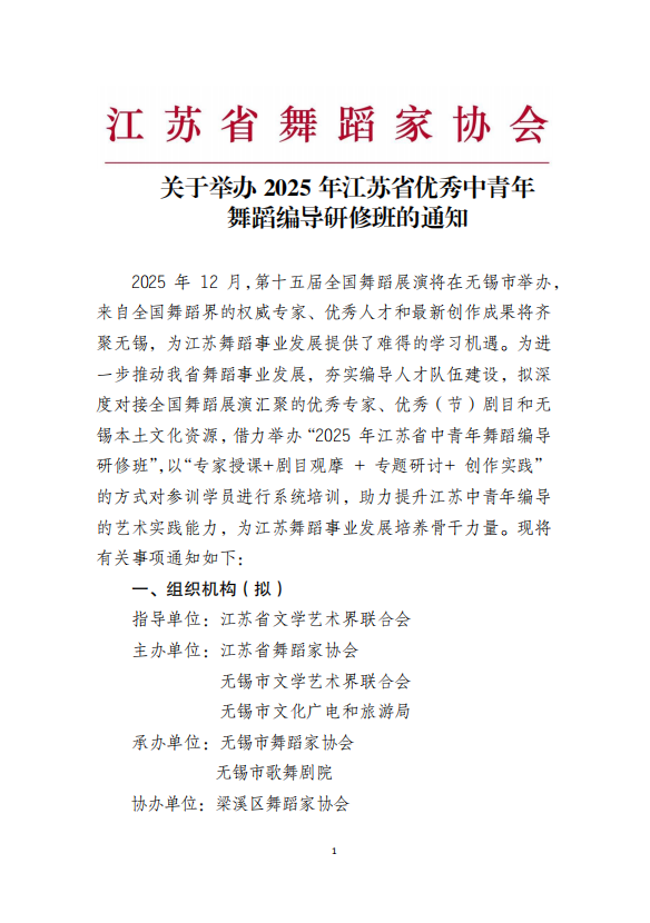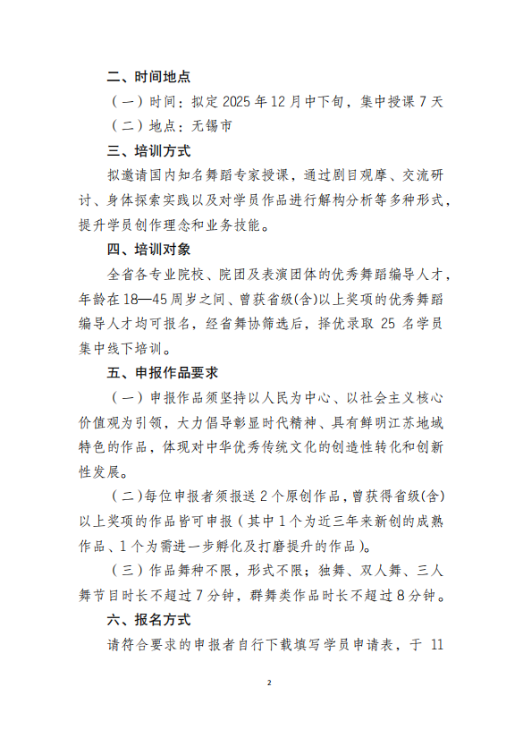 2025年江苏省优秀中青年舞蹈编导研修班通知
