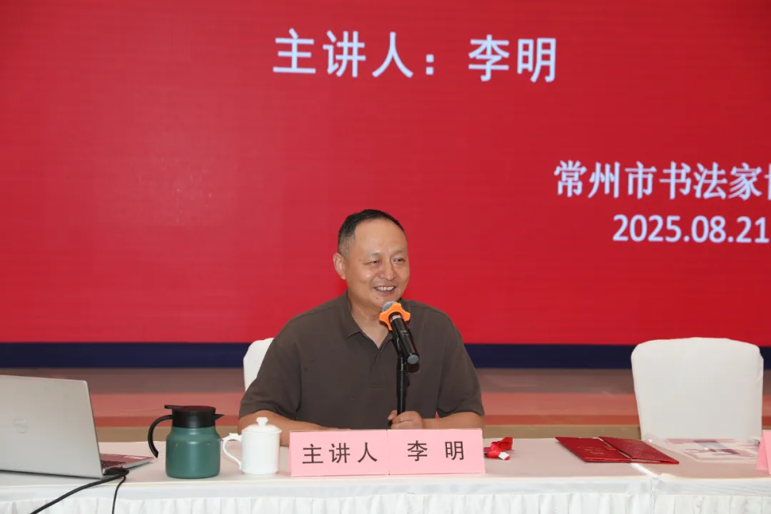 8月21日至22日,在常州市委宣传部、市文联的大力支持与指导下,由常州市书法家协会主办的“常州书法创作营”第一期培训成功举办。第一期培训导师为中国书法家协会理事、中国国家画院研究员、中国书法家协会楷书委员会委员、安徽省书法家协会主席李明,来自全市的32名中青年书法骨干人才参加了此次培训。市文联党组成员、副主席蒋志文,市书协主席戚散花,副主席汪凯、张泽江、芮新丰、陈曦、贾韬、谢小东等出席活动。活动由戚散花主持。