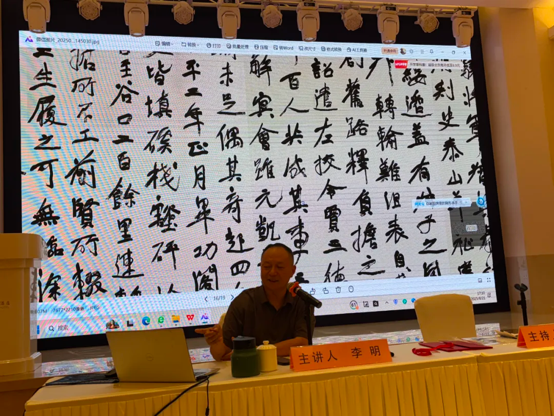 在讲座中,李明还就国展评审机制与展览环境,针对国展创作,提出了风格、趣味、形式、技法等方面的建议。以《石门铭》的临创为例,分享了个人经验,并作了创作示范。在答疑过程中,充分回答了学员在书体融合、笔法趣味等方面的问题。