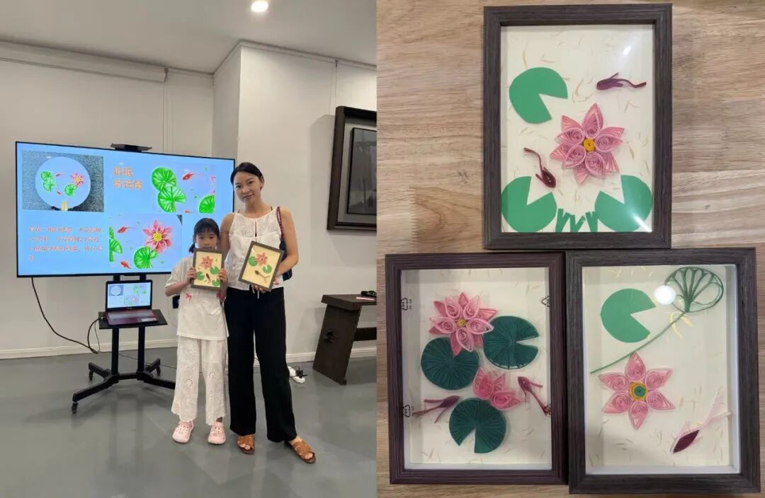 常州工艺美术协会会员、非遗手作老师张晓艳带领大家开启衍纸艺术手作体验。体验过程中,纸卷层叠间勾勒出“鱼戏莲叶间”的生动意象,完成了指尖上的江南叙事。