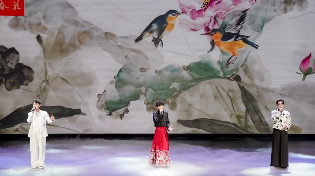 整场活动分为“墨上花开”“花语芳华”“花耀中华”“百花齐放”“繁花似锦”五大篇章,通过丰富的艺术语言,串联起花鸟画美学与家国情怀。