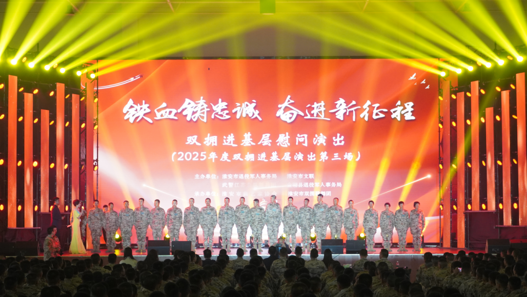 本月21日,由淮安市文联、淮安市退役军人事务局与驻淮武警某部共同主办的“铁血铸忠诚 奋进新征程”2025年度双拥进基层慰问演出走进驻淮武警某部,主办单位与部队官兵共1200余人观看了此次演出。