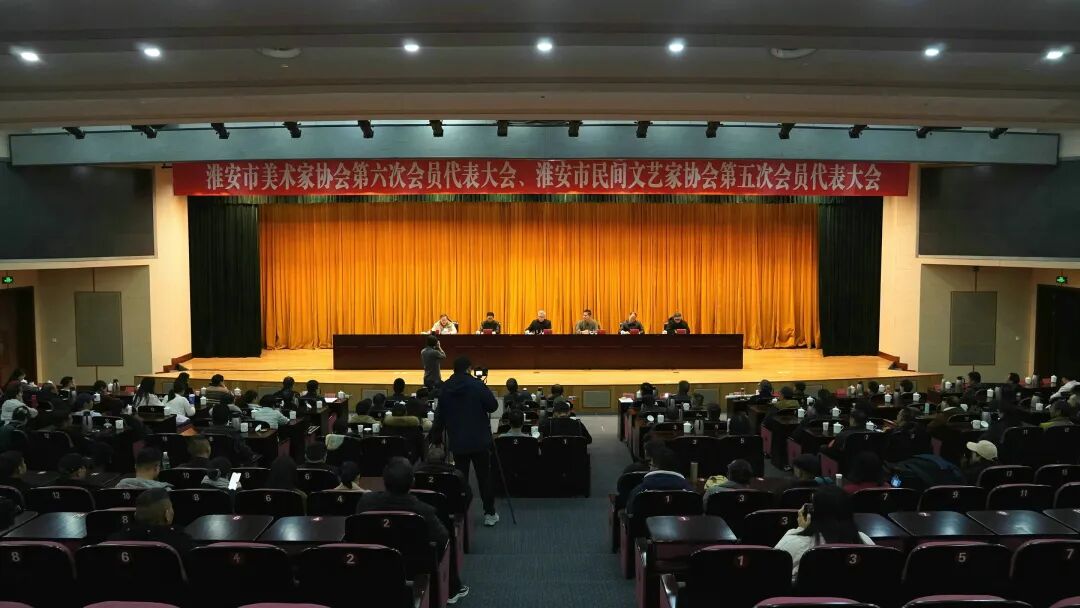 12月16日下午,淮安市美术家协会第六次会员代表大会、淮安市民间文艺家协会第五次会员代表大会在市行政中心会议中心召开。市文联党组书记、主席王维国出席会议并讲话,市文联党组成员、副主席沈军、叶华洲、闫振国出席会议,市委宣传部干部处处长施佳宏宣读市委宣传部关于协会主席团主席提名文件,市文联秘书长、四级调研员戴书昌到会监督指导,来自市美协、市民协的140余名会员代表出席会议。
