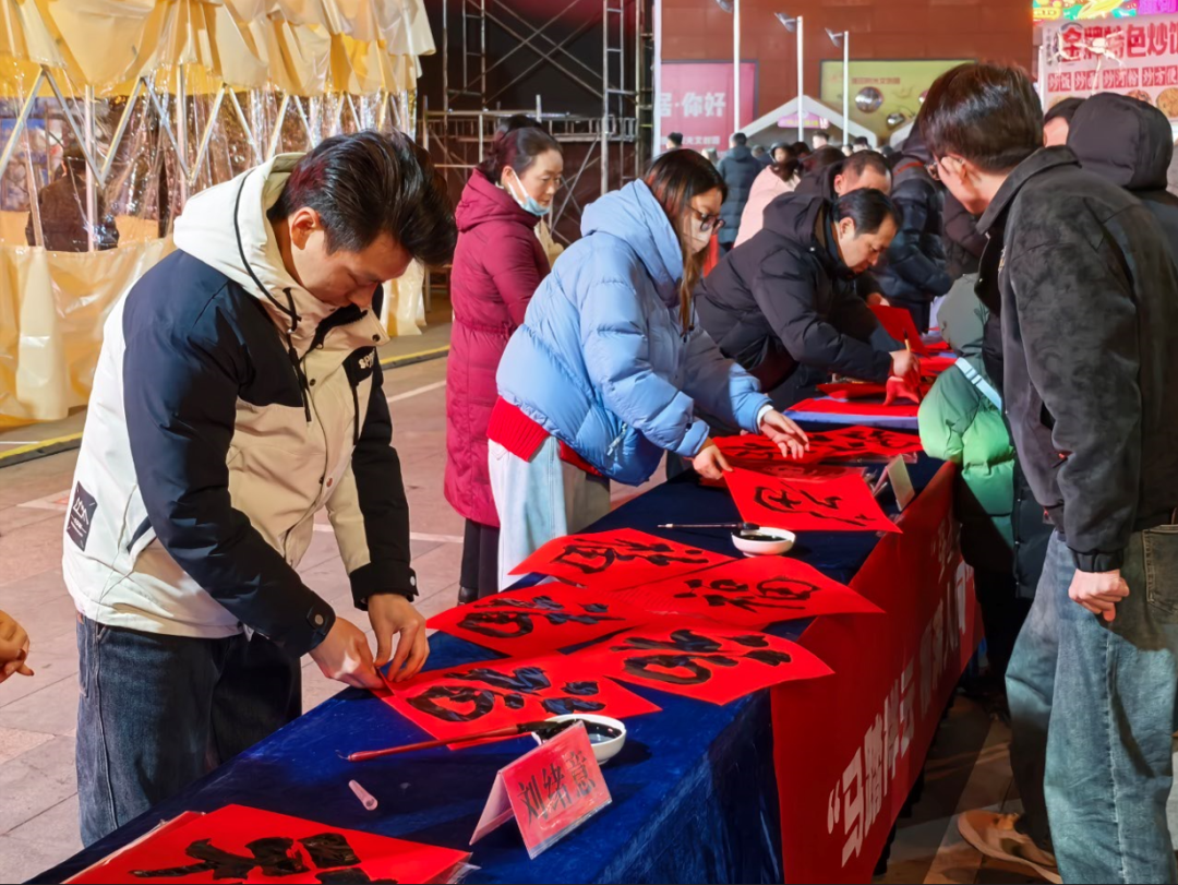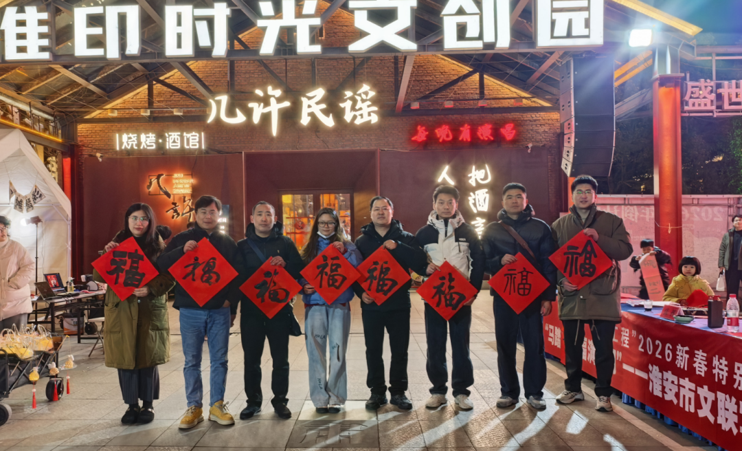 2026年2月8日晚,淮安市文联组织新文艺群体书法家张挥、毛洋洋、曹文建、朱俊蓓、王爱国、刘绪意走进江苏省第二批“文艺两新”实践基地淮印时光文创园,为市民群众送上艺术温暖、节日祝福。