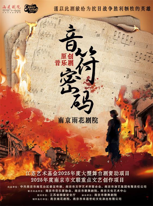 《音符密码》是为纪念中国人民抗日战争暨世界反法西斯战争胜利80周年制作的音乐剧。该剧以1940至1941年沦陷时期的南京为背景,讲述了中共地下党员凌皎以“亲日钢琴家”身份为掩护,将音乐化为武器、用乐谱传递情报的动人故事。在艺术表达上,该剧致力于主旋律题材的青春化呈现。它采用倒叙手法,从1950年旅英音乐家梁明益回国揭开尘封的乐谱秘密展开;音乐创作独具匠心,主题曲《故园》运用五声调式抒写家国情怀;舞美设计融合了雨花台、城墙等南京地域元素,通过移动条屏和特别的音符灯球实现时空切换与意境营造。不仅完成了红色题材的艺术创新,也成功吸引了年轻观众群体,实现了历史记忆的当代传承。