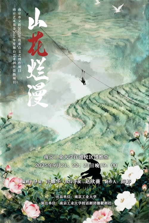 话剧《山花烂漫》以南京工业大学十四年来西部支教工作的真实历程为背景,以受教学生六年成长为视角,讲述了“家访改变教育观念”“面对山洪坚持梦想”“帮助灾后失声女孩重拾信心”“通过戏剧感悟历史体验人生”“运用资源助力乡村振兴”“帮助孩子戒掉游戏瘾”等既相对独立又内在衔接的六个故事。这些故事由校支教团真实经历改编,用润物无声的艺术化形式呈现南工大学子响应“到基层去、到祖国最需要的地方去”的号召,展现了新时代中国青年昂扬向上、积极奉献的精神风貌。