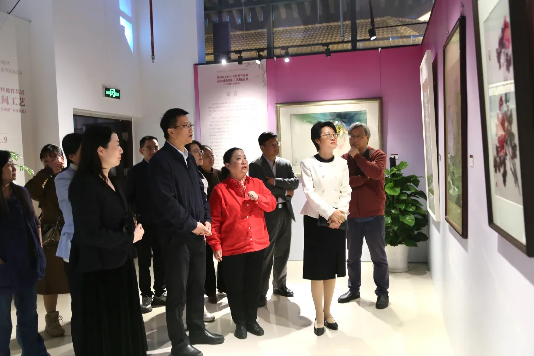 苏州市民间工艺精品展(“文艺两新”专场)吸引了大批市民驻足。展览共展出217件(套)工艺精品,涵盖织绣、雕塑、工艺家具、金属工艺等10大门类,囊括刺绣、缂丝、蓝印花布、玉雕、砖雕、核雕、竹刻、剪纸、红木家具、仿古铜器、农民画、麦秸画、金属錾刻、陶艺、手工编织、苏扇、漆艺、铜器等50个民间工艺品种,集中展现了苏州民间工艺的创新成果。更值得一提的是,这些作品背后汇聚了中国民间文艺最高奖“山花奖”获得者6人,中国工艺美术大师3人、省级工艺美术大师6人,以及国家级非物质文化遗产项目国家级代表性传承人5人、省级非物质文化遗产项目省级代表性传承人7人。