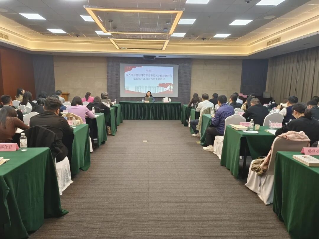 随后,市委统战部知工处处长葛南楠就深入学习贯彻习近平总书记关于做好新时代党的统一战线工作的重要思想进行专题授课,从统一战线的重要意义、新时代面临的新任务新要求等方面进行了系统讲解。