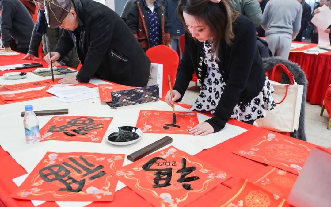 活动现场,墨香四溢、暖意融融,文艺家们凝神聚气、挥毫泼墨,笔走龙蛇间,一幅幅寓意吉祥、饱含马年新春韵味的春联跃然纸上。“大道扬鞭驰骏马,高天阔地展雄才”“春临华堂添瑞气,福到门庭起祥云”……一句句吉祥联语,一个个饱满福字,将新春的喜悦与温情定格在红纸上。