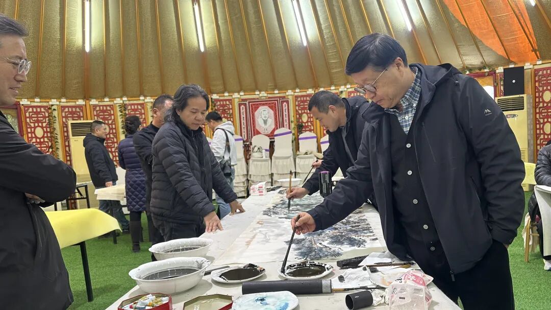 书法家用隶书、楷书、草书等多种字体,为小杨村书写了“文冠艺术村”“艺术小杨村”等展现小杨村文化内涵的书法作品,笔墨间尽显对乡村振兴的饱满热情;三位画家合作完成巨幅画作《八仙迎贵客》,融入小杨村本土特色元素,传递乡村喜迎宾客、共赴振兴之约的热情。省市区三级文联通过此次活动,宣传小杨村、推介小杨村,提升小杨村产业文化内涵、提高小杨村文旅美名,用艺术的形式吸流、引流、留流,促进小杨村产业振兴、生活富裕。