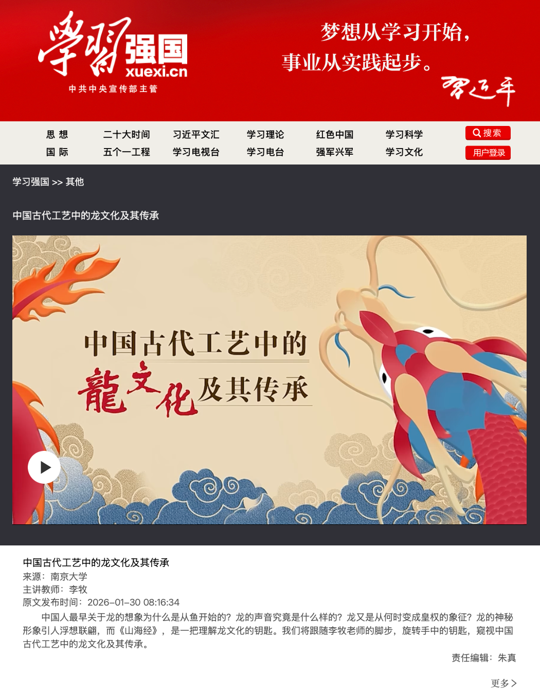 2026年,《中国古代工艺中的龙文化及其传承》在学习强国发布