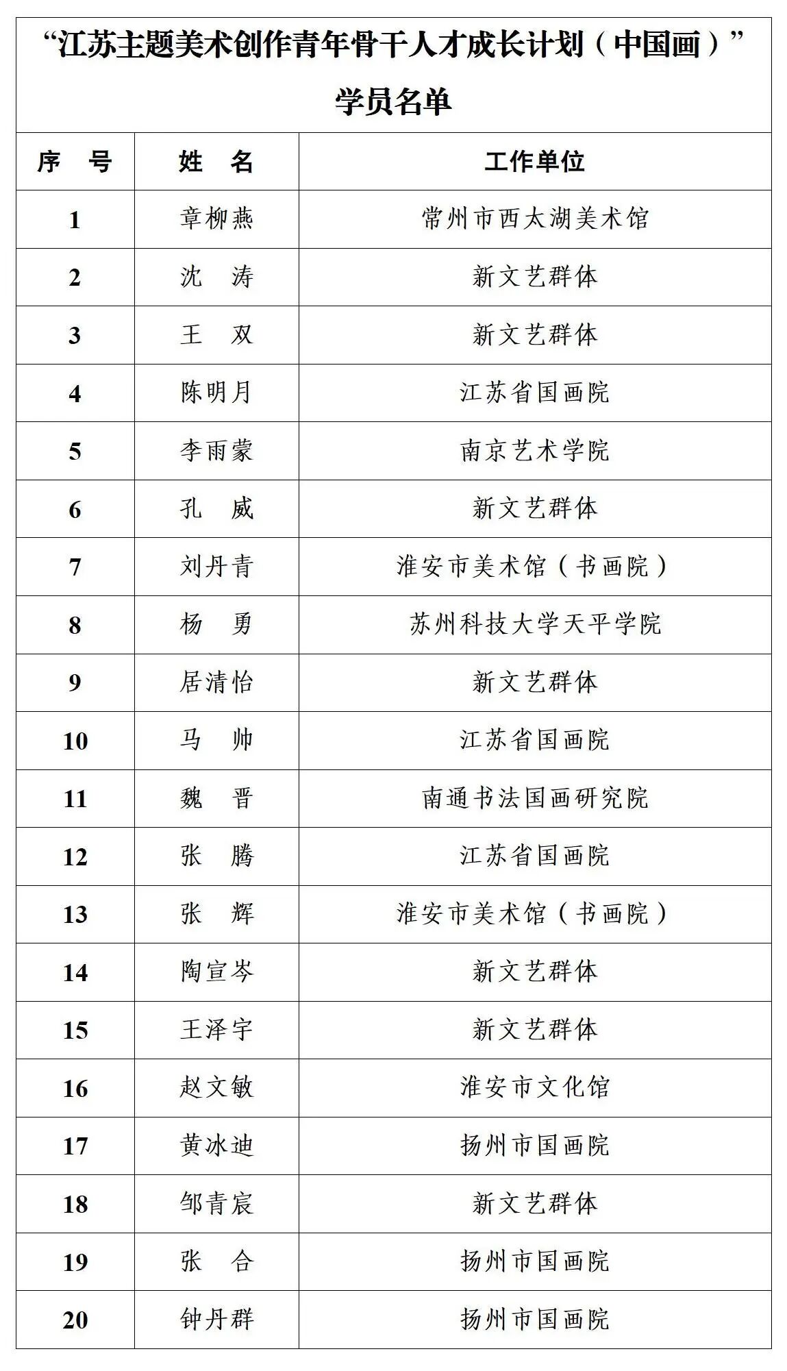 公示|江苏主题美术创作青年骨干人才成长计划(中国画)学员名单