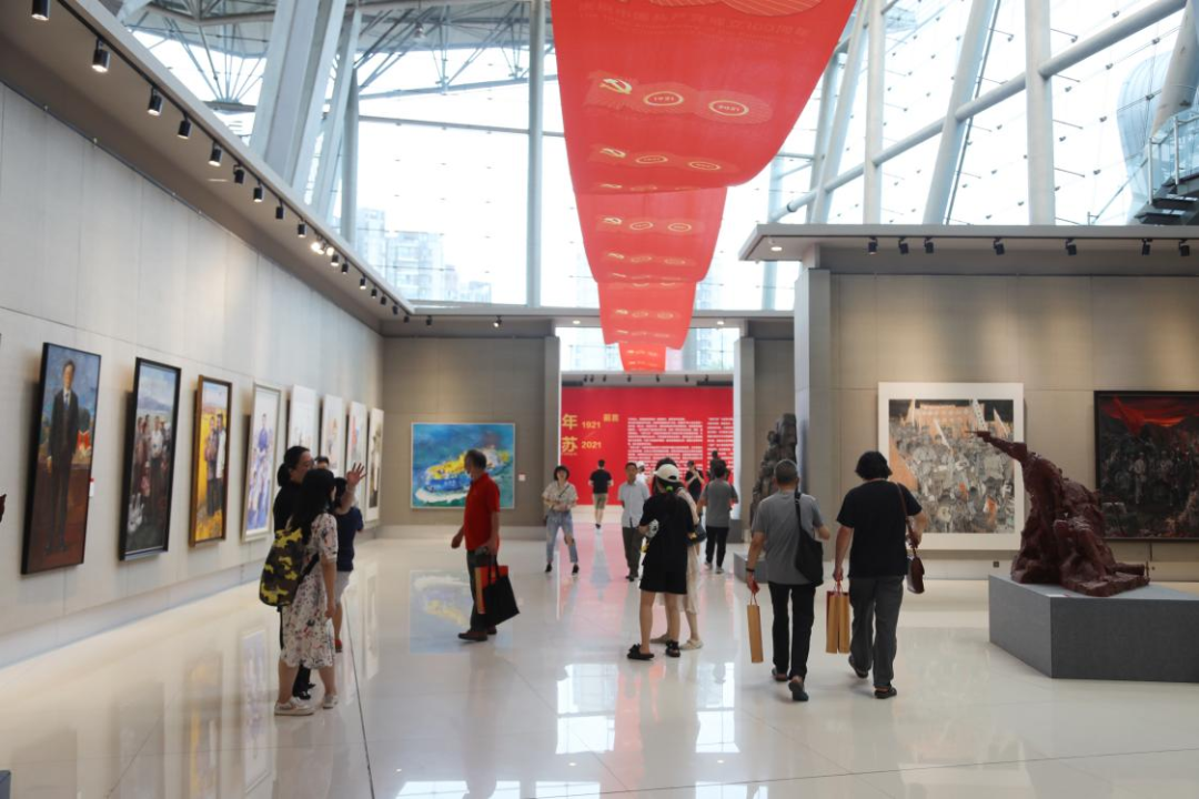 2021年6月28日,“百年江苏”大型美术精品创作工程作品展在省现代美术馆开幕,图为展览现场