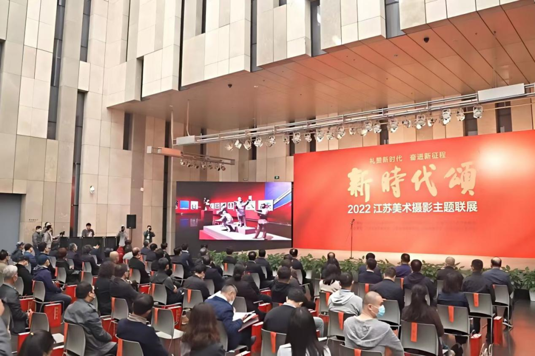 2022年11月16日,“新时代颂”2022江苏美术摄影主题联展闭幕式在省文联艺术剧场举行,图为展览现场