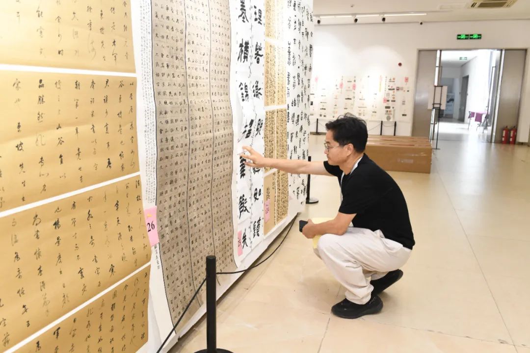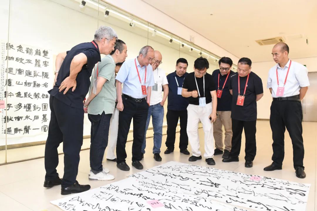 终评工作于6月9日下午开展。终评采取全体投票机制,对进入终评作者的作品全部铺开并重新编号,每位评委对作品进行评审并在投票表上投票。经文字审读后,评出拟入展作者163人,其中评出拟获优秀作者18人。