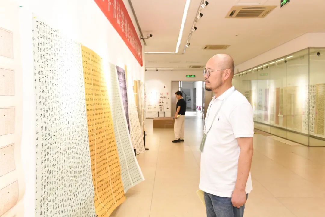 为营造风清气正的书坛风气,引导作者重视现场创作能力、注重文化修养,防止入围作者存在代笔或临摹他人作品的情况,终评结束后省书协对入围名单进行核查统计,组织非省书协会员作者进行面试。面试工作由承办方组织,省书协派评委监考。面试作者根据随机抽选的密封试题在现场进行创作,现场创作书体形式必须和入围作品书体形式相符。最后,1位作者因现场书写作品与投稿作品出入较大等严重问题取消入展,6位作者因文字审读问题取消入展,1位作者未参加面试,放弃入展资格。最终确定入展作者156位,其中优秀作者17位。
