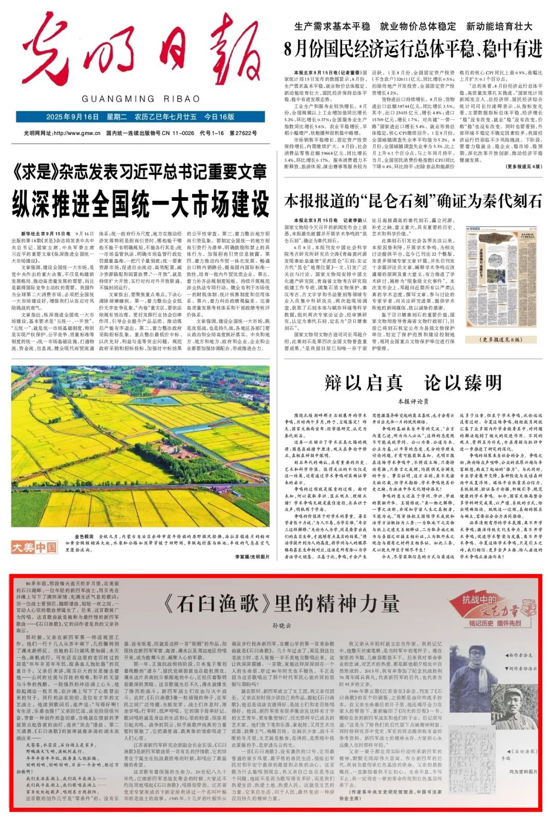 一首《石臼渔歌》,没有激烈的口号,它用最普通的家乡风景、最平常的渔民生活,描绘出军民对和平安宁最深的渴望和必胜的决心。这首歌为什么能唱到现在,我父亲自己也在思考这个问题,他说不是因为歌写得有多好,而是我们热爱生活、热爱土地、热爱人民。这就是文艺的力量,它来自生活,归于人民,最终变成一种深沉而持久的精神力量。