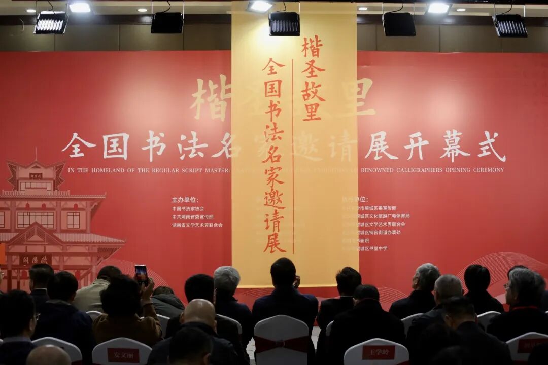 中国书协分党组书记马勇明,中国书协副主席、楷书委员会主任顾亚龙,中国书协副主席、书法评论与文化传播委员会主任鄢福初,中共湖南省委宣传部一级巡视员胡革平,湖南省文联党组书记、主持日常工作副主席乐奕,湖南省文联党组成员、副主席、省书协副主席倪文华,湖南省文联副主席、省书协驻会副主席兼秘书长胡紫桂,中国书协楷书委员会部分委员、中国书协书法评论与文化传播委员会部分委员,三届楷书展评审机构成员、部分入展作者,楷圣故里——全国书法名家邀请展参展作者,湖南省书法骨干作者,以及湖南省、长沙市相关单位同志参加活动。开幕式由中国书协分党组成员、一级巡视员柳斌主持。
