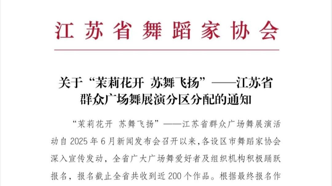 关于“茉莉花开 苏舞飞扬”——江苏省群众广场舞展演分区分配的通知