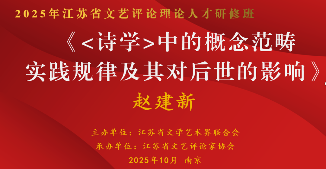 2025年10月19日上午,由江苏省文联主办、江苏省文艺评论家协会承办的“2025年江苏省文艺评论理论人才研修班”邀请到中国戏曲学院《戏曲研究》编审赵建新老师为学员授课,题为《<诗学>中的概念范畴及其对后世的影响》。授课主要内容如下: