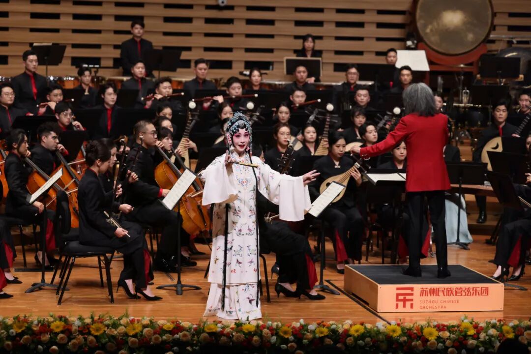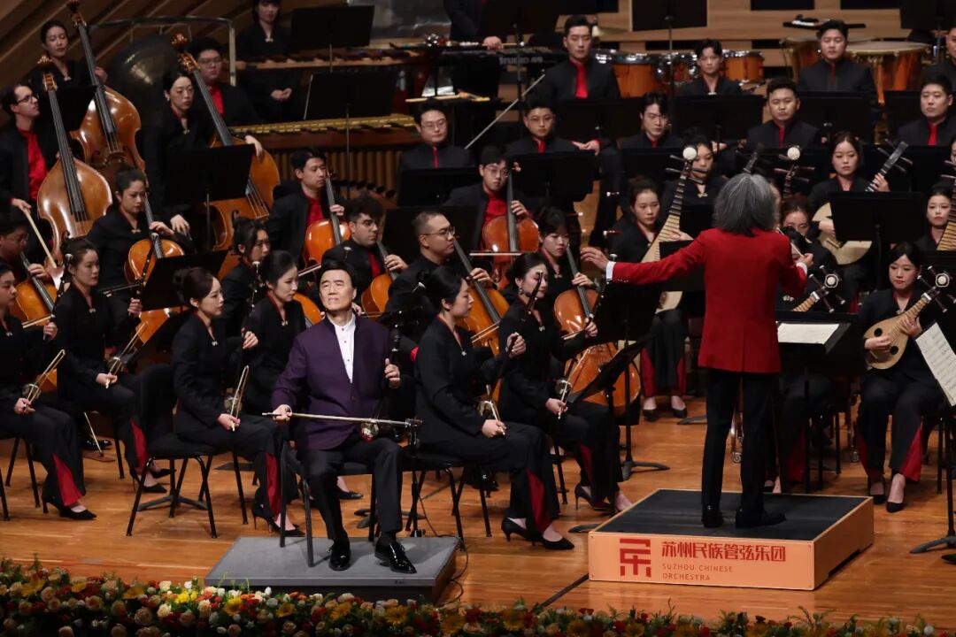 在艺术表现力上,《江河湖海颂》通过多重艺术形式的跨界融合,拓展了民族管弦乐的边界。《春暖江花》将乐队演奏与昆曲吟诵相结合,丝竹乐与昆曲声腔的音色水乳交融,完美呈现出“日出江花红胜火”的诗意;多声筝这一改革性乐器出现在第四乐章《云水流波》中,扩展的音域与丰富的音色变化在炫技性的音乐展开中呈现民间音乐素材的鲜活生命力;第七乐章《海阔天极》则以交响合唱展现大海的浩瀚与包容。这种中西合璧、传统现代交融的理念既保持了传统民乐的韵味,又凸显了交响化的宏伟气势,满足了当代观众对“可听性”与“艺术性”的双重期待。