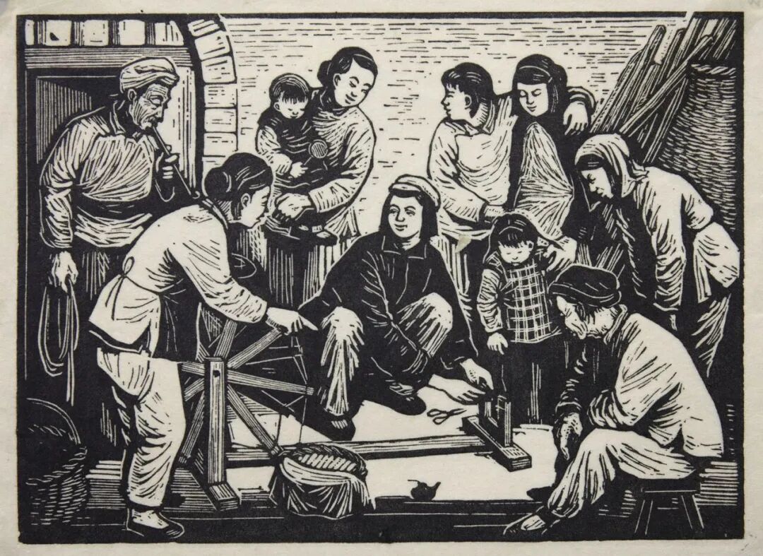 力群 修纺车 版画 14cm×19.4cm