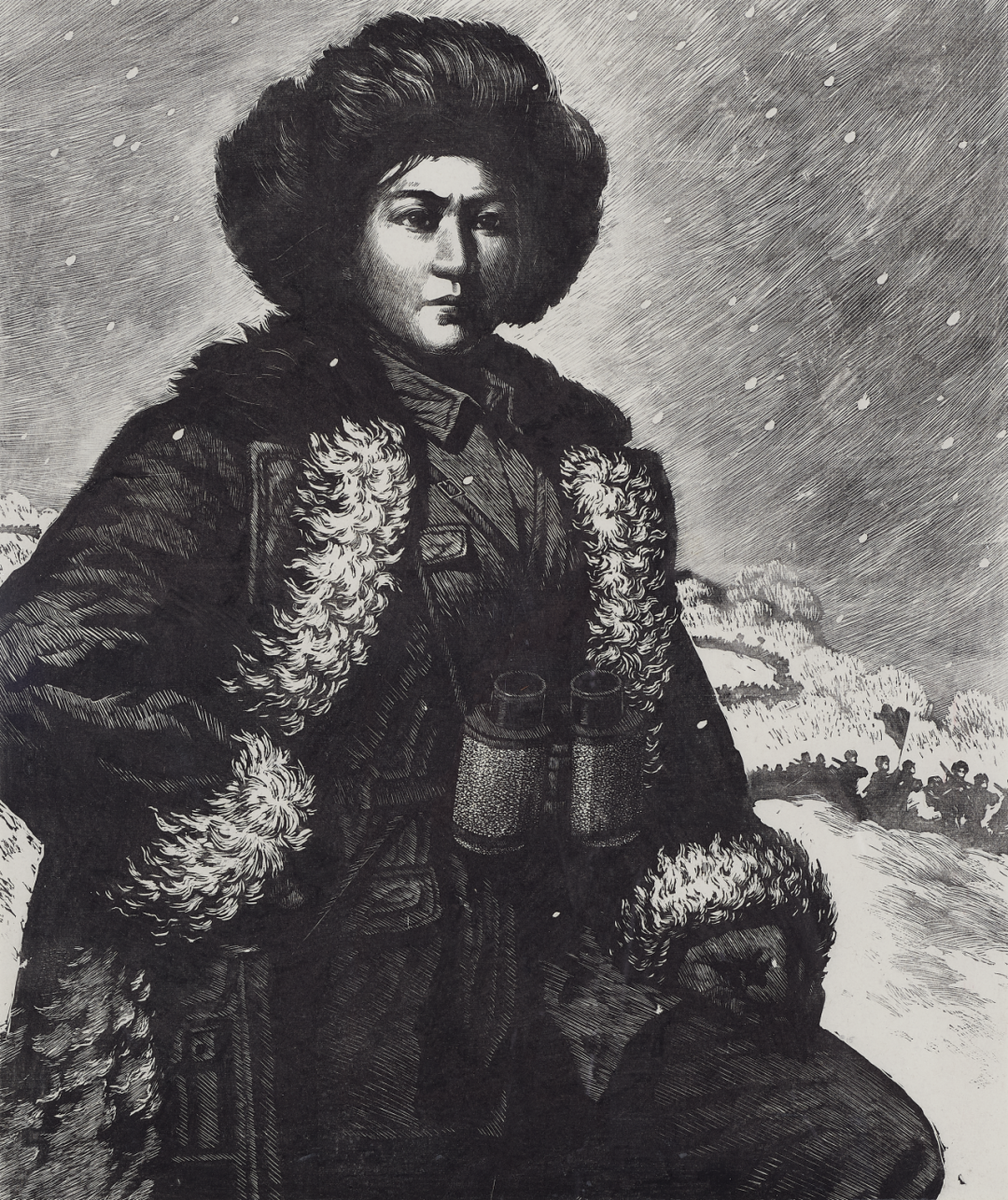 闫风 赵一曼 版画 63.2cm×53cm