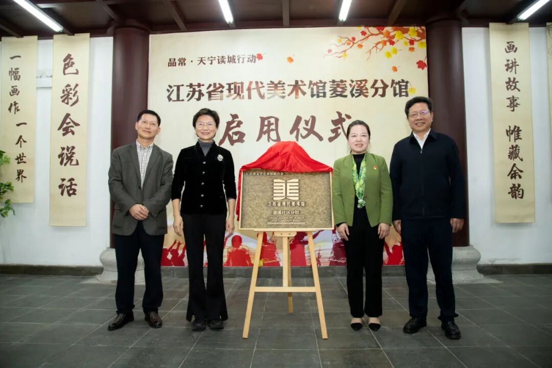 江苏省委宣传部副部长徐宁,凤凰出版传媒集团副总经理、现代快报社党委书记、社长屠法,紫金文创研究院副院长、江苏省地方志工作办公室原党委书记、主任左健伟,常州市委常委、宣传部部长陈志良,常州市委宣传部副部长、市新闻出版局(版权局)局长谢春林,江苏省委宣传部文化传承发展处副处长沈亮,江苏省现代美术馆策展人、江苏省青少年书画协会会长潘永斯,常州市文广旅局党组成员、三级调研员田海明,常州市文联党组成员、副主席兼秘书长蒋小萍,菱溪社区党委书记汤亚萍等领导出席授牌仪式,潘永斯、汤亚萍共同为分馆揭牌。
