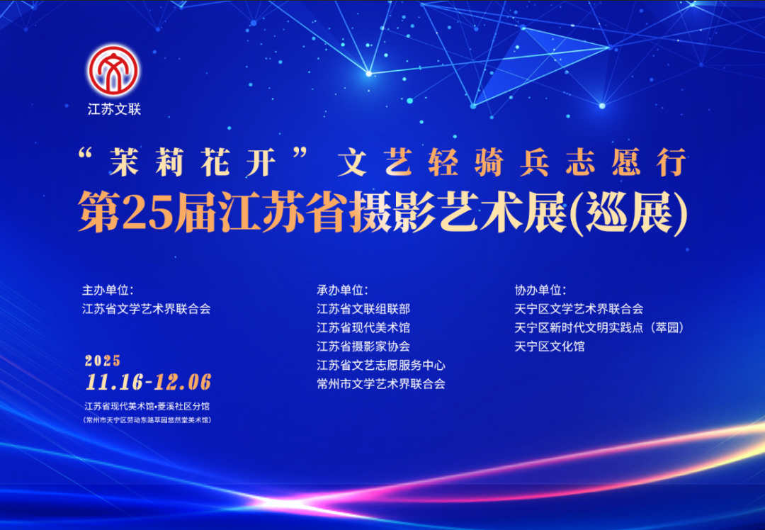 11月16日,江苏省现代美术馆菱溪社区分馆授牌仪式在常州顺利举行,“‘茉莉花开’文艺轻骑兵志愿行——第25届江苏省摄影艺术展(巡展)”同步拉开帷幕。