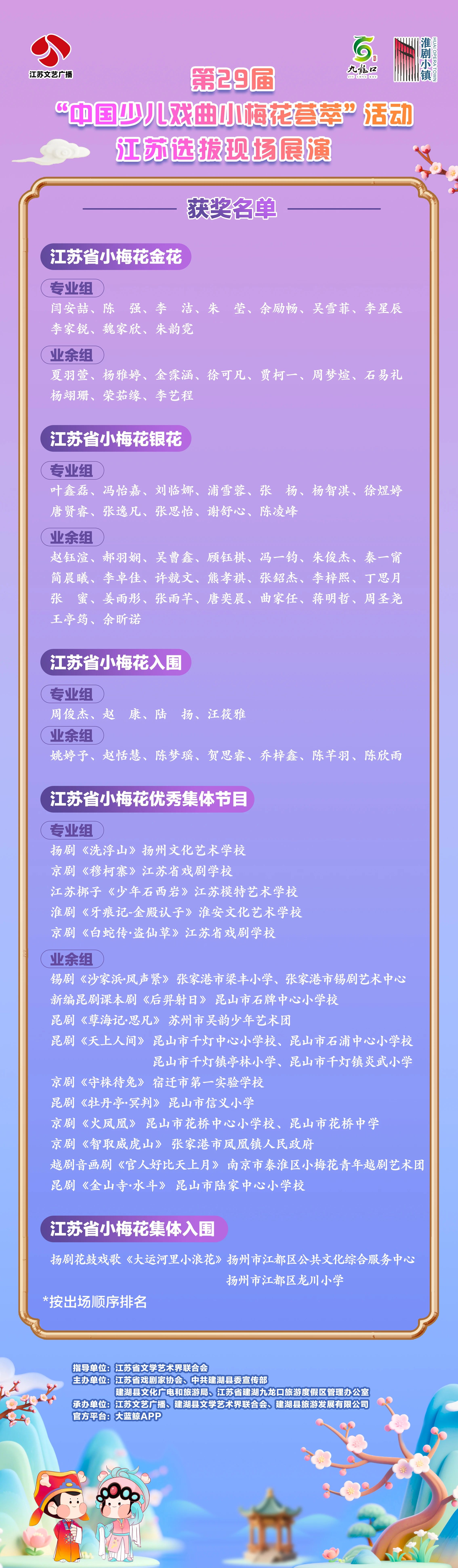 第29届“中国少儿戏曲小梅花荟萃”活动江苏选拔现场展演获奖名单